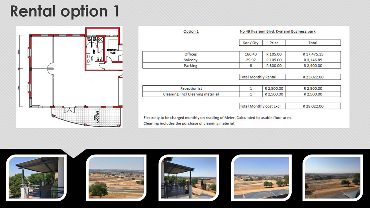 49 Kyalami Boulevard is situated in the Kyalami Business Park. It's location has quick access to all major road networks including the N1, N3 and N14.